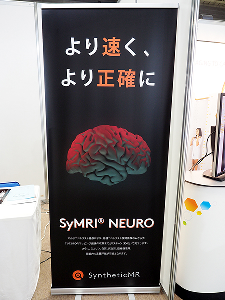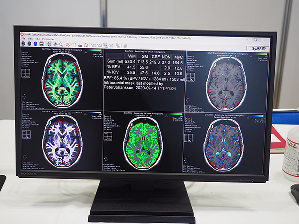 スウェーデンの産業都市リンシェーピング市に本社を構えるSyntheticMRは,今回初めてITEMに出展した。同社が展開するのが,ワークステーション用のソフトウエアである“SyMRI NEURO”だ。GE社と提携し,“MAGiC”の名称でMRIに搭載されているソフトウエアである。