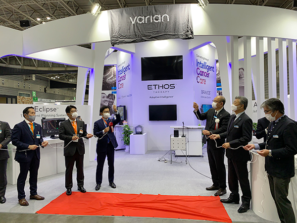 なお,ITEM 2021前夜の4月15日(木)に,Siemens Healthineersによるバリアンの株式取得に伴う最終手続きが完了したことが発表された。ITEM初日の16日(金)には,バリアンブースにおいて,シーメンスヘルスケア(株)代表取締役社長の森 秀顕氏とバリアン専務執行役員の福島権一氏の立ち会いの下,除幕式が行われた。ブース前面上部を覆っていた幕の下からは,「varian」のロゴの下に「A Siemens Healthineers Company」の文字が現れ,両社の社員から大きな拍手が沸き起こった。