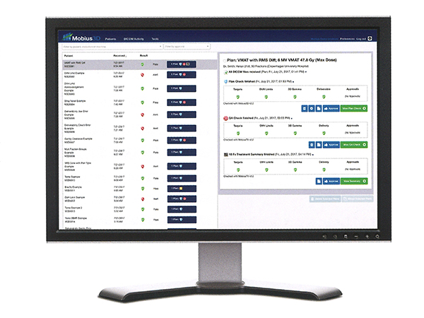 Mobius3D は1台のMobiusサーバで最大10台の放射線治療装置と2万人以上の患者データの保存が可能である。Mobius QAプラットフォームは,マシンQA(DoseLab),3D治療計画のQA,IMRT / VAMTおよび日常治療のQA,CBCTのQAなど6層のエラー検出機能を備えており,患者の治療全般にわたる一連の流れを包括的にカバーできる製品となっている。治療計画情報はDICOM-RTを介して受診し,Webインターフェイスで解析結果を参照可能。従来,検証作業には時間がかかるほか,ヒューマンエラーなども課題であったが,Mobius3Dでは放射線治療計画装置からデータを転送しておくとサーバで自動処理が行われるため,QA担当者は結果をWebベースで確認するだけですみ,きわめて効率的である。なお,DoseLabは,Windows上でスタンドアローンモジュールとして使用可能なほか,Mobius3D内のモジュールとしても自動画像解析を行うことができる。