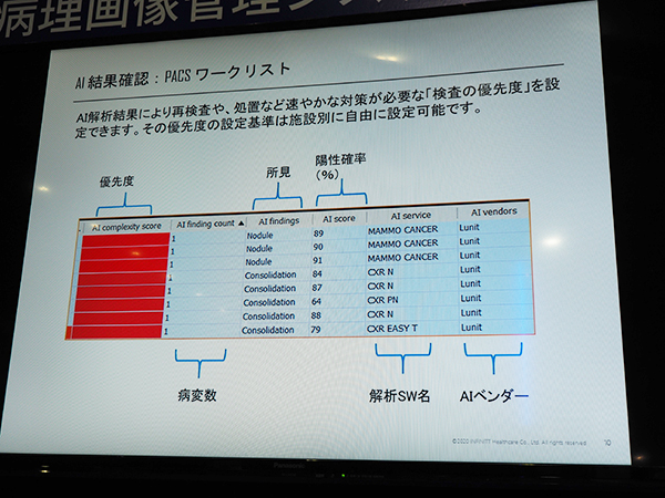 病変数や所見,陽性確率,それに伴う検査の優先度などがワークリストで表示される。