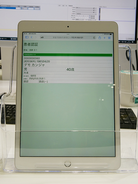 さらに,検査を確実に行い,医療安全に寄与する機能として,患者取り違え防止機能を紹介した。インルームモニタやタブレットに“患者認証専用画面”を表示させて,検査時に患者情報を確認する。正しく患者認証できた場合は画面の背景色が緑色,誤っている場合はピンク色となり,一目で直感的にわかるようにした。これにより,取り違えを防ぎ,安全に検査を施行できる。