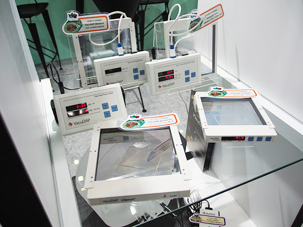 面積線量計「VacuDAP」はX線装置のコリメータの下に取り付けるだけで面積線量を測定できる。測定器・表示器の一体型/分離型や,空気カーマ測定が可能なタイプなど複数をラインアップし,既設の装置でも線量管理を行うことが可能である。