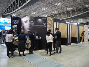 ネットカムシステムズは,乳腺画像診断ワークステーション「mammodite(マンモディーテ)」を出展し,感染対策にもなる読影室を模した3つの個室で来場者に機能や操作性を紹介した。