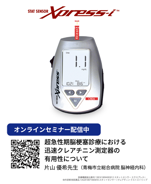 緊急造影時の造影可否判断や造影前の腎機能スクリーニングにお使いいただけるクレアチニン迅速測定装置「スタットセンサー エクスプレス i 」をご紹介します。