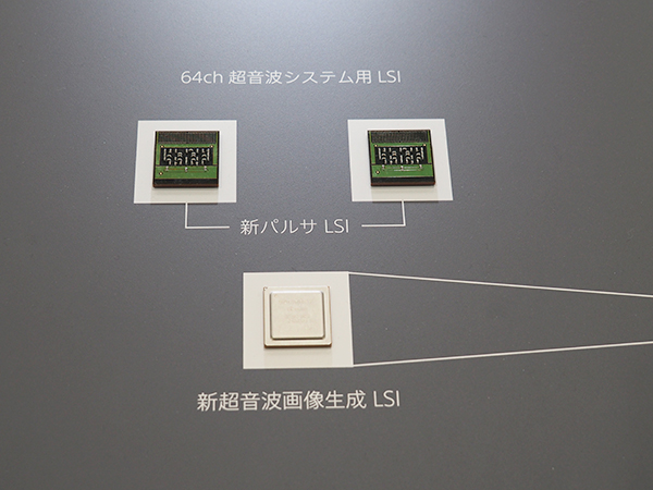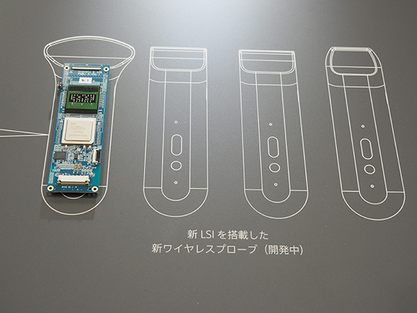独自開発のLSIを搭載したワイヤレスハンドヘルド型超音波画像診断装置「viewphii-US」や開発中の次世代LSIの性能をアピール