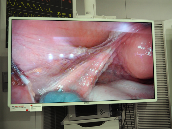 今回,映像配信環境を構成する新たなラインアップとして,4K3D表示を可能にする55インチ大型サージカルディスプレイ「MDFC-8255 3SB」(参考展示)や,独自の画像合成機能を搭載した4K 55インチ大型サージカルディスプレイ「MDAC-8355」が紹介された。4K3D表示ディスプレイは従来32インチが最大であったが,ロボット手術の増加に伴い,より大型のディスプレイの開発に取り組み,完成したのがMDFC-8255 3SBである。また,MDAC-8355は,ディスプレイ自体に同社独自の画像合成機能を搭載し,Nexxisや画面分配器を使用することなく最大16レイアウトのマルチモダリティ画像を表示できる。ディスプレイ単体のため,価格面で導入ハードルが低いのがメリットである。
