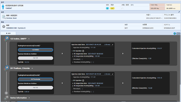 また核医学に関しては2核種にも対応しており,DICOMタグから読み取った2つの放射性医薬品の臓器線量を個別に自動で計算いたします。