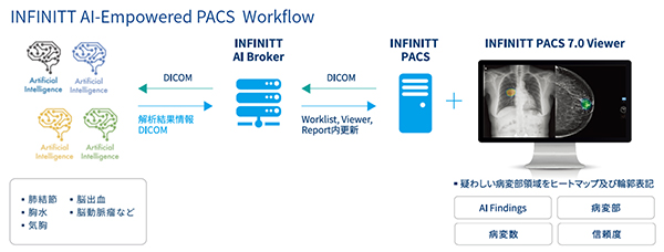 各社よりAI技術を活用した画像解析支援ソリューションが数多く紹介されているなか,INFINITT PACS 7.0はこれらのソリューションの画像解析により得られる豊富な情報をフル活用するAIのプラットフォームとして,画像診断ワークフローの効率化をお手伝いします。