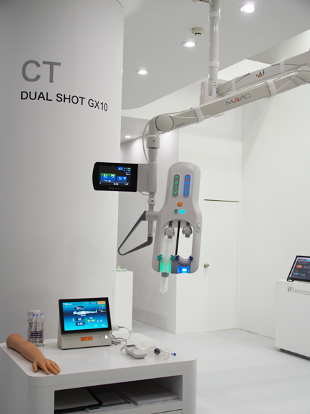 ブース中央に設けられたCT用注入器の新製品「DUAL SHOT GX10」のコーナー