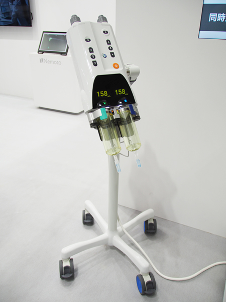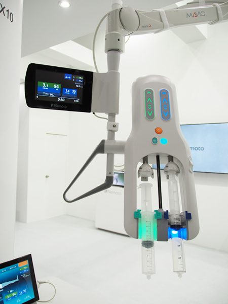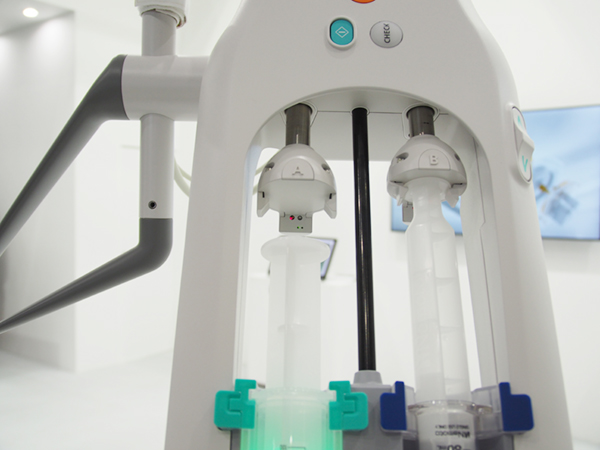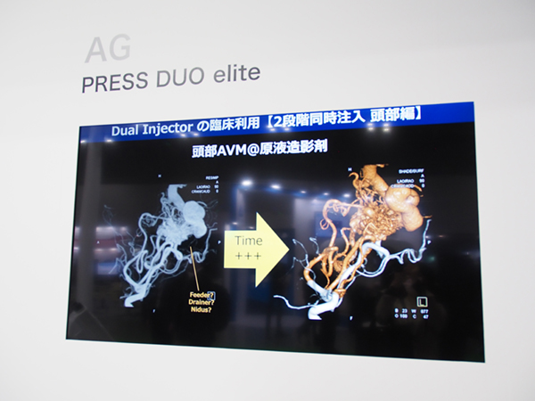 ■アンギオ用注入器「PRESS DUO elite」のコーナーでは,「2段階同時注入」を紹介