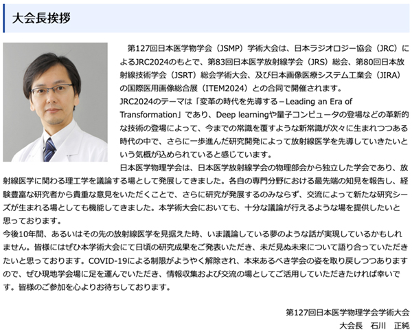 ・第127回日本医学物理学会学術大会 石川 正純 大会長