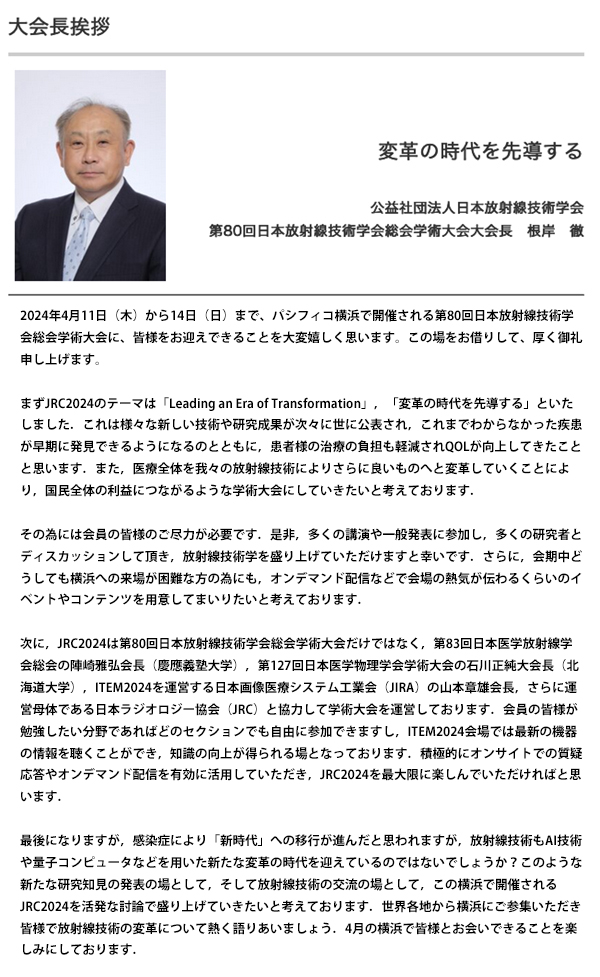 ・第80回日本放射線技術学会総会学術大会 根岸 徹 大会長