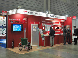 MRI室を中心に医療施設の安全管理,安全運用をサポートするイーメディカル東京は,MRI室対応LED照明で大きなシェアを持つ東京計器アビエーションとともに,「MRI室をはじめとした検査室の安全・安心な検査環境をサポート」をコンセプトに展示を行った。MRI室での吸着事故はあとを絶たないが,その原因の一つとして,「うっかりによる確認ミス」や周囲の磁性体金属の動きによる誤警報があるという指摘がある。イーメディカル東京は,特許技術により環境ノイズを抑制する磁性体センサー「magfhyⅡ」(マグフィーⅡ)を広く展開しているが,今回,より設置性を高めた新たな磁性体センサー「MAGFHY AXIA」を披露した。