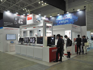 バルコは,2025年に国内で発売予定の32MPカラーディスプレイ「Coronis OneLooK」をメインに紹介した。Coronis OneLooKは12MPカラーディスプレイ「Coronis Uniti」の後継機種で,1画面で初めて精中機構適合認定を取得。モノクロを超える推奨輝度1200cd/m2や1300:1のコントラスト比などに加え,新たに搭載された「Touch Bar」により,スクリーンの下部に配置されたタッチボタンで使用頻度の高いアプリケーションをクリックすることなく起動できる。国内初公開で,ITEM会場では富士フイルムなどのブースでも展示されている。