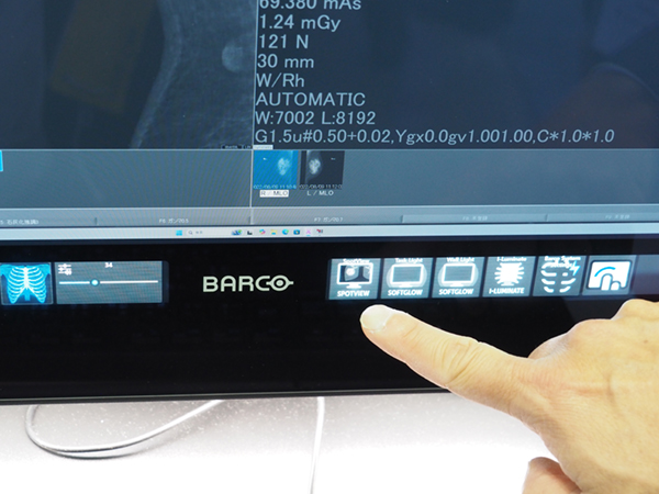 Coronis OneLooKは12MPカラーディスプレイ「Coronis Uniti」の後継機種で,1画面で初めて日本乳がん検診精度管理中央機構の適合認定を取得した。モノクロを超える推奨輝度1200cd/m2,1300:1のコントラスト比で,輝度・色度をピクセル単位で補正(PPU)し画面ノイズを大幅に低減するほか,「i-Guard」フロントセンサーで常時画像補正を行う。色域は前身のCoronis Unitiより30%拡大し,同社独自のカラー階調補正技術「Steady Color」により一貫した色彩表現が可能である。高性能な画像処理とグラフィックスにより,迅速な画像読み込みとスムーズな再生を実現。RapidFrame技術も搭載し,動画像での検出率を向上している。さらに,直感的なワークフローやタッチパッドに加え,新たに搭載された「Touch Bar」では,スクリーンの下部に配置されたタッチボタンを押すだけで,使用頻度の高いアプリケーションをクリックすることなく起動できる。保証期間は5年間で,7年まで延長が可能である。