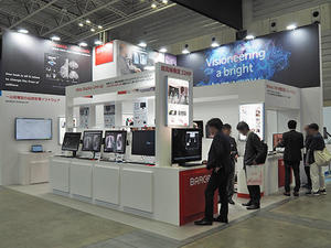 バルコは,臨床現場のニーズに応える映像配信・画像統合ソリューションやサージカルディスプレイ,医用画像表示ディスプレイを精力的に開発し,ITEMでは毎年最新ラインアップを発表している。今回は,2025年に国内で発売予定の32MPカラーディスプレイ「Coronis OneLooK」を中心にブースを展開した。また,画像配信ソリューションコーナーでは,2012年に世界初のインテリジェント手術室向けに開発された非圧縮IPビデオソリューション「Nexxis」に統合された環境を再現。IVR室向けのワイヤレスソリューションや院外ライブ配信システム「Nexxis Live」のオンプレミス機能のほか,次世代パネル搭載の55インチサージカルディスプレイや操作室を効率化する49インチのウルトラワイド型ディスプレイなどの製品・技術が展示された。