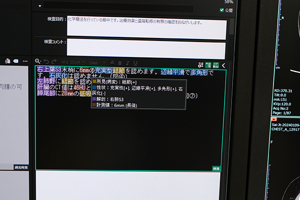 「読影レポート構造化AI」で平文で入力した所見を構造化してデータベース化