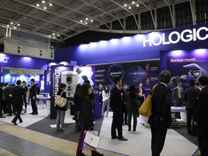 ホロジックジャパンは,2024年よりX線骨密度測定装置「Horizon」の直販を開始し,マンモグラフィ,バイオプシー,骨密度測定と,乳がん診療に必要な画像診断機器をトータルソリューションで提供する体制を整えた。Horizonは腰椎側面を仰臥位で撮影できるX線骨密度測定装置の最上位機種で,実機を使ったデモンストレーションで紹介した。また,マンモグラフィはハイグレードモデル「3Dimensions」を,独自の圧迫板「SmartCurve」やソフトウエア「3DQuorum」とあわせて展示し,被検者や検査技師,読影医の負担を軽減できることをアピールした。バイオプシーシステムは国内販売を開始した「Brevera Breast Biopsy System」を展示し,ウィメンズヘルスのリーディングカンパニーとして,スクリーニングからフォローアップまでをトータルサポートする製品ポートフォリオを披露した。