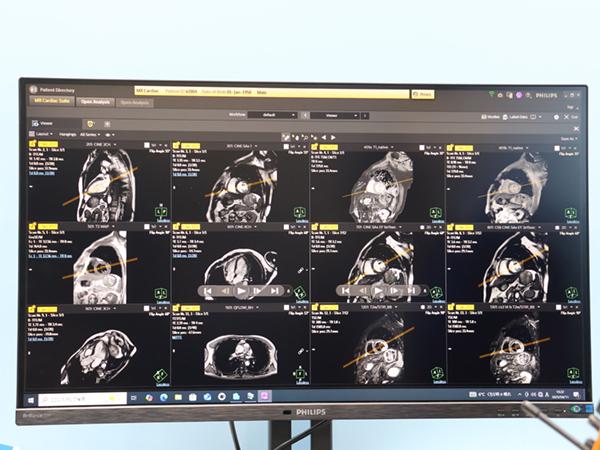 バックグラウンドでトレース解析した画像を一覧表示する「MR Cardiac Suite」のビューワ機能