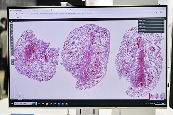 PSPのブースでは,このほかにもAIソフトウェアを提供する「NOBORI PAL AI」などNOBORIの利便性を高めるクラウドサービス「NOBORI PAL」を紹介。さらに,患者が自身のスマートフォンにアプリケーションをインストールし,画像をはじめとした検査情報を参照できるようにして健康管理を行える「NOBORI PHR」もアピールした。また,前回のITEMでも紹介され,その後サービスが始まった病理クラウドソリューション「NOBORI for Pathology」のデモンストレーションを行っていた。