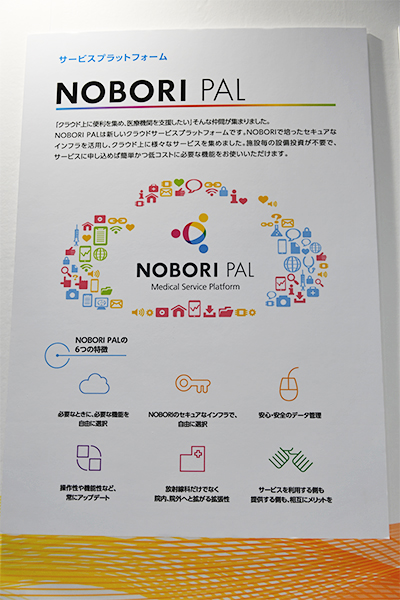 このほか,ブースでは,AIソフトウェアを提供する「NOBORI PAL AI」といったクラウドサービスのプラットフォームである「NOBORI PAL」や,「NOBORI-PHRサービス」なども紹介していた。