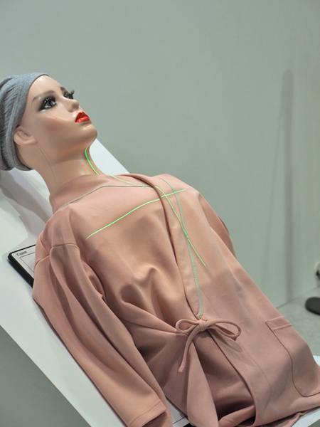 京都の伝統工芸の作家とコラボレーションした回診用X線撮影装置のコンセプトモデル。左側のサイドカバーには京友禅があしらわれている。