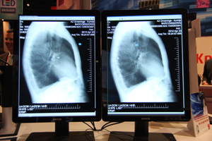 放射線科向けの新製品としては,LED搭載の診断用モニタを発表した。LEDにすることで,従来のLCDと比べ,省電力化を図れるとともに,グレースケールが見やすくなるなど,画面品質も向上する。