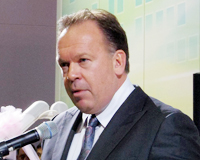 RSNA 2012の2日目の11月26日,GE Healthcareブースにおいて,GEのジェフリー・イメルトCEOが同社のヘルスケア事業戦略についてプレゼンテーションを行った。GE Healthcareのプレジデント兼CEOのジョン・ディニーン氏の紹介で登壇したイメルト氏は,ヘルスケア事業への長期的な投資は非常に重要であると述べた。その上で,患者さんのためになる医療機器の開発に力を入れていくとし,今回のRSNA2012で紹介している“Silent Scan”やFUSの「ExAblate 2100」を紹介した。さらに,買収したU-Systems社の技術を生かした「somo・v」のように,技術の組み合わせによる相乗効果が生産性の向上につながると言及。GE Healthcareの製品開発のビジョンを来場者に示した。
