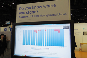 被ばく低減に関する取り組みとしては,新たに線量管理システムの「Dose Watch」を披露した。このシステムは,CTをはじめX線装置などの線量を一元管理するというもの。得られたデータから,担当者の違いによる線量のバラツキをグラフ化したり,施設間での線量の違いやプロトコールの違いなどを比較して,最適化を図れる。他社のCTやX線装置も対応することが可能だという。日本での展開は現在のところ未定だが,国民の放射線被ばくへの関心が高くなっているだけに,国内展開が期待されるシステムである。