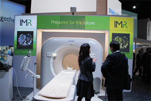 フィリップスのCTでは,昨年のRSNA2011に引き続き64/128スライスの「IngenuityCT」ファミリーと,フラッグシップである256スライスの「Brilliance iCT」を展示した。今回,低コントラスト領域における検出能向上に大きな効果を発揮する新しい逐次近似再構成であるIMR(Iterative Model Reconstruction)が発表された。