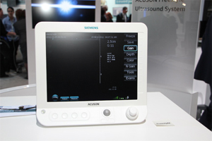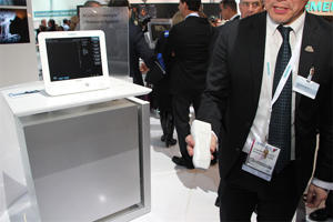 シーメンスは,ワイヤレストランスデューサ(探触子)を採用した超音波診断装置の新製品である「ACUSON Freestyle」を大きくアピールした。FDAの510kは取得済みで,製品のリリースは2013年4~6月ごろを予定しており,日本でもそれに合わせて薬事取得を進める予定とのことだ。