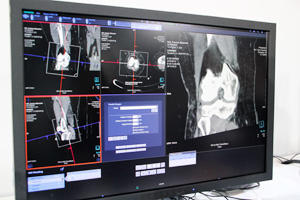 シーメンスブースでは,最新のバージョンであるVA30が展示された。多くの新機能が追加されているが,そのひとつである自動的に解剖学的な形状を認識して処理を行う“ALPHA technology”を紹介した。ボリュームデータの読影の際にMPRを作成する場合には,手動でパラレルレンジを関心部位に合わせて,FOVなどを調整する必要があった。ALPHA technologyでは,膝や肩といった解剖学的な位置を自動的に認識し,それを基に最適なMPRの作成を行うことができる。ALPHA technologyでは,領域や部位によってプリセットが用意されており,あらかじめ設定しておくことで,読影者が画像を開いた時にはすでに処理が終了しており,簡単な調整のみで読影を開始することができる。