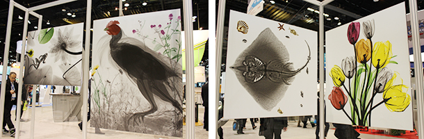 RSNA100周年の記念企画として,サウスビルディングにX-ray Artのブースが設けられた(Booth 3965)。オランダの放射線物理士Arie van’s Riet氏によるもので,動植物を題材にX線画像を使った作品が30点ほど展示された。作品は,鳥や魚,は虫類といった動物(事故死した野生動物や,死亡したペットを撮影しており,動物を傷つけてはいない)と草花をX線撮影し,コンピュータ上で色彩を施している。会場を行き交う人々が足を止め,独特で美しいアートの数々を眺めたり,写真を撮るなどして楽しんでいた。