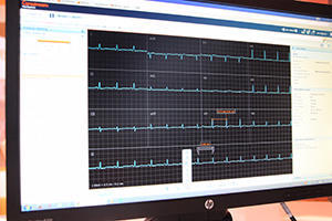 Carestream Health(ケアストリームヘルス)のRSNA 2014のヘルスケアIT展示では,同社のwebを使った画像ビューワである「CARESTREAM Vue Motion」が紹介された。ケアストリームヘルスでは,病院での画像情報管理において,ベンダーによらないトータルの画像情報管理を行う“Vendor Neutral Archive(VNA)”を進めているが,サーバに集約された情報を参照するために,web環境でもリッチな機能を持った画像ビューワが必要とされている。同社では,Vueの名称で展開する画像関連の情報システムの中でも,VNAに対応するシステムが重要になると考え,このVue motionの開発に力を入れている。ブースでは,mferで取り込んだ心電図波形を表示し,画面上でR-R間隔などの計測が行える機能などを紹介した。