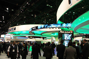 RSNA2014でサウスホールに出展したFUJIFILM Medical Systems(富士フイルム)は,ブースのテーマをコーポレートスローガンである“Value from Innovation”として展示を行った。ブースのデザインも一新され,コーポレートカラーであるグリーンを基調に重なり合った円が調和を感じさせるオープンなデザインとなっていた。