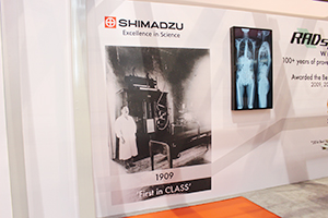 レントゲン博士がX線を発見した1896年の翌年に,2代目島津源蔵氏が,日本で初めてX線写真の撮影に成功し,1909年には国産初の医療用X線装置を発売したことで,島津製作所の日本の医療用X線装置のパイオニアとしての歴史が始まった。ブースでは,100年以上の歴史を持ち,RSNAとともに歩んできた同社の軌跡を映像などを用いて来場者に紹介した。