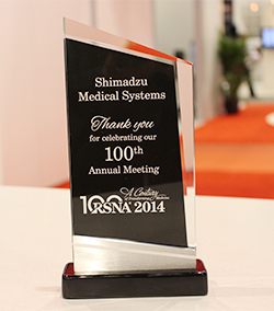 会期中にRSNAから100周年祝賀への感謝楯が贈られた。 |