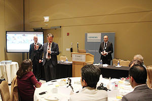 Siemens Healthcare(シーメンス)は,12月1日(月)にHyatt Regency McCormick Place Hotelにおいて,「The Media breakfast」を開催した。Member of the Managing Board of Siemens AGでHealthcare CEO のHermann Requardt氏が,「Healthcare of Tomorrow」について,Siemens Healthcare North America CEOのGregory Sorensen氏が「Value-based decision-making」について,プレゼンテーションを行い,中国,インド,ラテンアメリカ,ブラジルなど各国から集まったメディアの質問に答えた。