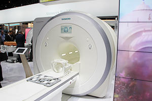 Siemens Healthcare(シーメンス)のMRコーナーでは,超電導1.5Tの新製品「MAGNETOM Amira」(国内薬事未承認)を展示した。MAGNETOM Amiraは,シーメンスのコンセプトである“COF”を体現して開発された新製品であり,臨床的価値については妥協することなく,3TのMAGNETOM Skyraなどに搭載されている最新の機能を搭載。静音撮像法である“Quiet Suite”,動きのアーチファクトを大幅に軽減し自由呼吸下での撮像を可能にする“StarVIBE”,非造影MRA撮像を可能にする“QISS”などが利用できる。