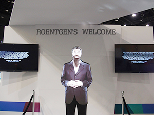 レイクサイドラーニングセンターの入り口横には,前回に引き続きCentennial Showcaseが設けられた。100回を記念した前回は放射線医学とRSNAを歩みを振り返り,島津製作所の「ニューオーロラ号」や英国EMI社の世界初の臨床用CT「EMIスキャナ」などが展示されたが,今回は次の100年に向けて,放射線医学にイノベーションをもたらす最先端の技術などが紹介された。