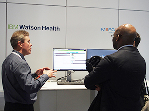 GEと全米フットボール協会(NFL)などが取り組んだアメリカンフットボール選手の脳しんとうによる脳のダメージを抑えるための共同研究,MergeのPACSとIBMが開発する人工知能システム「Watson」を組み合わせた診断支援システムが展示された。また,3Dディスプレイによる立体視の体験,個別化医療のためのセラノスティクス・ナノ粒子イメージングの機器展示,3Dプリンタによる臓器モデルの作成のデモンストレーションが行われ,多くの来場者が「未来の放射線医学」を体験していた。