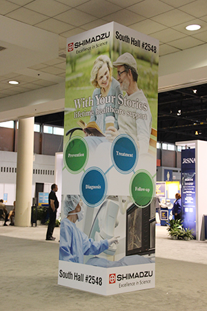 Shimadzu Medical Systems(島津製作所)は,グローバルの展示テーマである“Passion for Details”を掲げ,主力であるX線システムなどを展示した。そして今回,島津の今後の方向性を示すメッセージとして,“With Your Stories”を新たに発表。これまで,診断領域を中心にシステムや技術の開発を行ってきたが,今後は治療や予防,フォローアップと,ヘルスケア全体をサポートし,「人生に寄り添っていく」ための事業を展開していくとの思いを来場者にアピールした。すでに,同社の分析機器事業における製品を,医療分野向けとして承認を受け提供を始めるなど,X線システムにとどまらない,幅広いヘルスケアへの取り組みをスタートさせている。