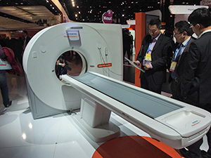 実際の展示でも,イノベーションカンパニーとしての存在感を示す新製品が数多く登場した。CTは米国初披露のDSCT「SOMATOM Drive」,SSCT「SOMATOM go」(日本国内薬機法未承認),MRIは1.5T の「MAGNETOM Sempra」(日本国内薬機法未承認),X線血管撮影装置では「ARTIS pheno」(日本国内薬機法未承認)などが発表された。