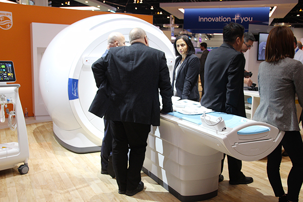 In-Bore Experienceとともに展示された1.5T MRIシステム「Prodiva 1.5T CX」
