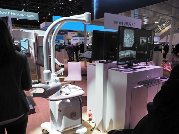 このほか,自動走査により検査者の手技に依存せず,検査精度の標準化を図れる乳腺用超音波診断装置「Invenia ABUS」なども展示された。GEヘルスケアは,今回別の場所にブレストケアのワークショップを行うブースを設けて,Invenia ABUSをテーマにしたセミナーなども行われた。