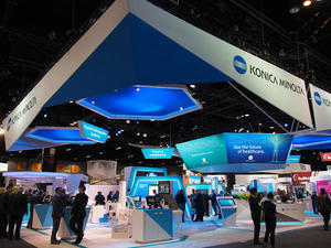 Konica Minolta Healthcare Americas, Inc.(コニカミノルタ)は,継続しているブーステーマ“Better decision, sooner.”に加えて,サブテーマとして“See the future of healthcare.”を掲げた。サブテーマの“future”は,デジタルX線動画システムやバイオ分野の事業,クラウドPACSソリューションなどの新しい取り組みを指し示している。