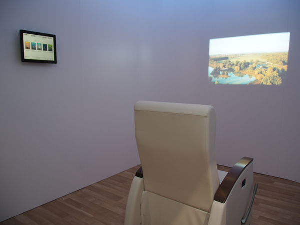 Philips(フィリップス)の核医学は,検査室をイメージしたコーナーに半導体検出器を搭載したフルデジタルPET/CT装置「Vereos PET/CT」のモックアップを展示した。模擬検査室は,照明・映像・音響で被検者がリラックスできる環境を演出する“Ambient Experience”で彩られた。検査室と併せて,被検者の待機室も展示。検査室と同様に,Ambient Experienceにより被検者の好みに合わせたリラックス空間を演出できることが紹介された。Vereos PET/CTは,日本国内でも2017年10月に販売が開始されており,全世界で約60台が稼働している。