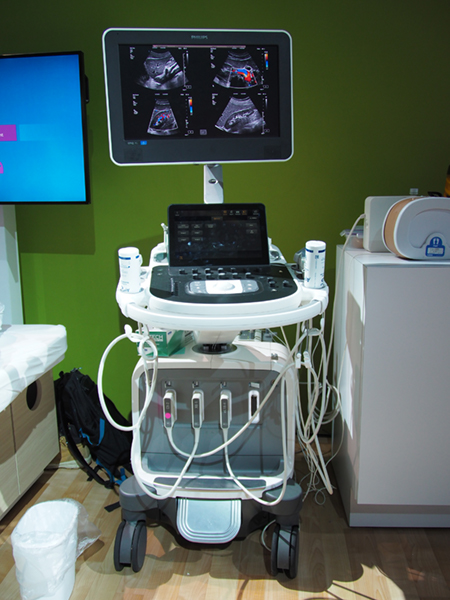 このほか会場では,腹部系アプリケーションが搭載された「EPIQ 7G」など,超音波診断装置のラインアップを展示。EPIQ 7Gは,高精密ビームフォーマーと超並列処理を組み合わせた独自のビームフォーミングテクノロジー“nSIGHT”により,空間分解能,時間分解能,組織均一性がトレードオフとならずに,診断価値の高い画像を提供することができる。