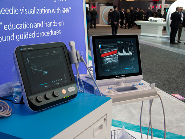 超音波領域では,「SONIMAGE HS1」や「SONIMAGE MX1」などが展示された。これらの製品は日本国内でも展開しているが,米国では整形外科領域に加え,麻酔科領域での活用を増やすべく,セミナーやKey Opinion Leader(KOL)への訴求などを積極的に行っている。コニカミノルタでは,超音波領域をX線とヘルスケアITに続く3本目の柱として成長させていきたい考えだ。