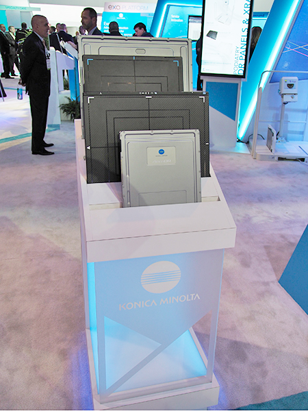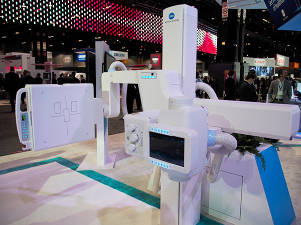 Konica Minolta Healthcare Americas, Inc.(コニカミノルタ)は,X線領域の展示の目玉として,現在FDAに申請中のデジタルX線動画撮影システムを紹介した。日本国内では,X線動画解析ワークステーション「KINOSIS」とワイヤレスDR「AeroDR fine」(米国での販売名「AeroDR HD」),島津社製の診断用一般X線撮影装置「RADspeed Pro」で構成されたシステムとして,2018年11月に提供を開始。COPDなどの呼吸器疾患を中心に活用されている。